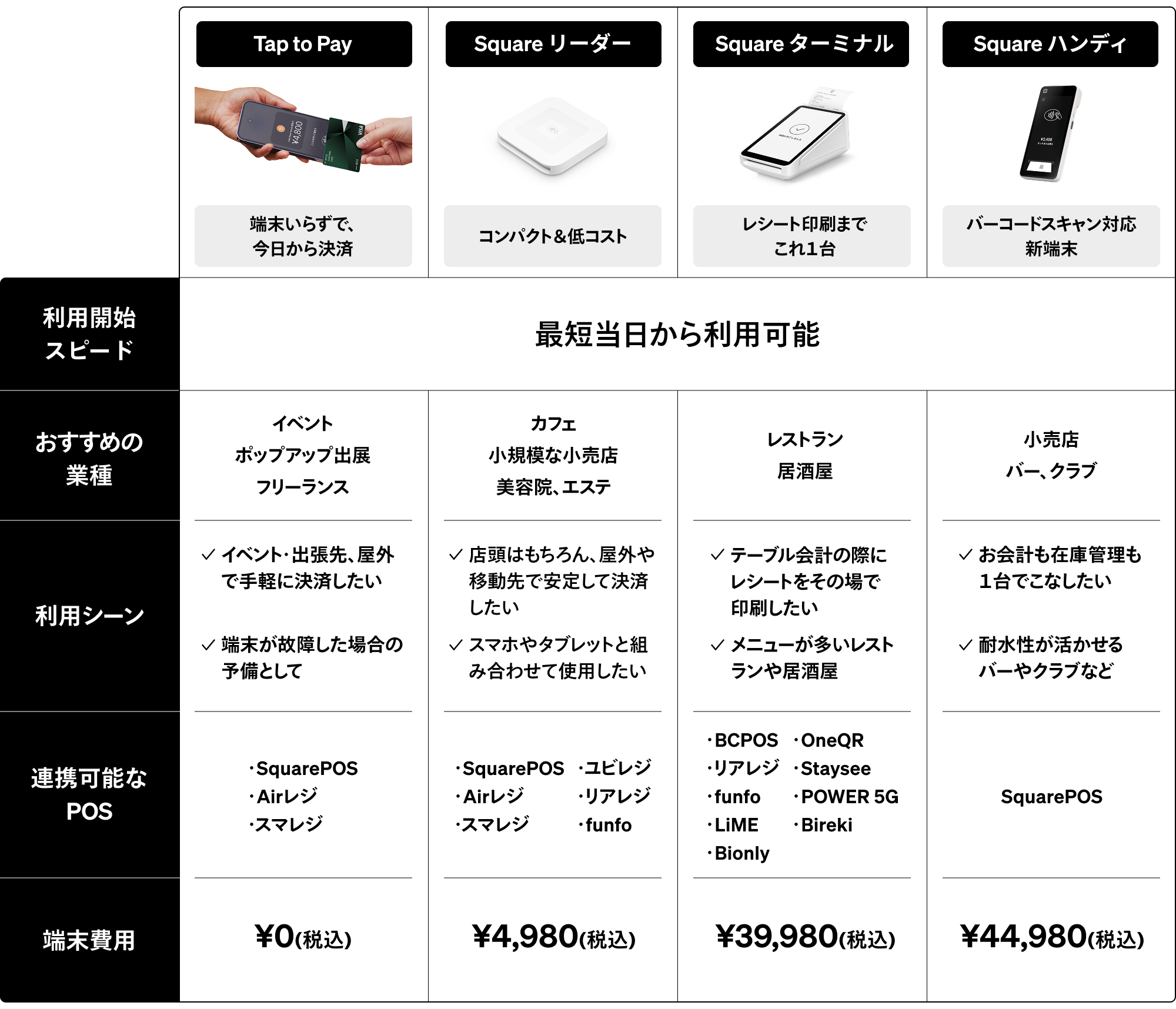 Squareが提供する、3つの「はやい」