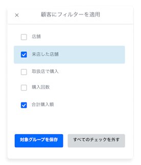 顧客リストでは、対面販売やオンライン販売などの販売経路や、店舗、使用端末を問わず、お客さまにかかわる情報がすべて同期されます。強力なフィルター機能や区分化機能を使えば、保存したデータを掘り下げ、購入パターンを分析できます。常連のお客さまや来店頻度の低いお客さまなど、来店状況を追跡することで、どの層のお客さまが、どういった理由で再来店しているのかを正確に把握できます。