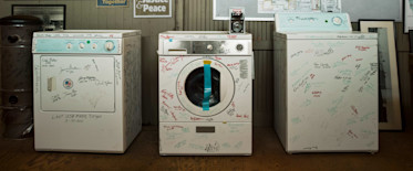 The last three machines off the Electrolux line, signed by the employees who made them.