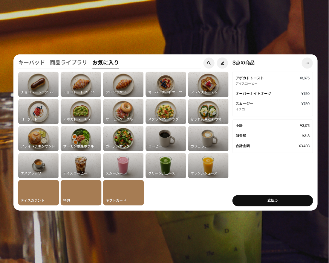 Square レジスターを利用すると、決済の受け付け、メニュー作成、価格設定、業務管理など、1台でこれらすべてに対応できます。
