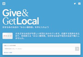 「好きなお店を応援したい」「困っている現状を助けたい」と考える方が、あなたの「みらい優待券」を購入することであなたのお店・サービスを支援できるウェブサイト「Give & Get Local」をSquareでは立ち上げました。このウェブサイトから、誰でも応援したいお店をすぐに見つけ出し、簡単にギフトカードを購入することができます。また、掲載には一切のコストもかかりません。