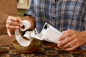 一方、Square ターミナルは持ち運びができるので、テーブル決済やイベントなどでの決済をしたい方におすすめです。また、Square ターミナルはレシートプリンターも備えていますので、別売りのレシートプリンターは不要です。Square ターミナルの内蔵レシートプリンターは、熱を加えることで紙に印字がされるタイプのプリンターです。インクのご用意は必要ありません。レシート用紙はオフィス用品店や販売店の他、Square公式オンラインショップからもご購入いただけます。