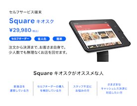 Squareに対応する端末(iPhoneやAndroid)をお持ちの場合は、新たにモバイル端末をご用意いただく必要はありません。また、新機能として、決済端末なしでアプリ上でタッチ決済を受け付ける「スマホでタッチ決済」の場合、無料でご利用可能です。Square リーダーはSquare ショップまたは取扱店でご購入ください。予約管理機能や従業員管理には有料月額プランが存在しますが、無料プランもご用意しています。また、スマートフォンやタブレットが不要なオールインワン型の決済端末Square ターミナルやPOS内蔵のカウンター向け決済端末Square レジスター、お持ちのiPadをはめ込んで使用できるSquare スタンドもご用意しています。