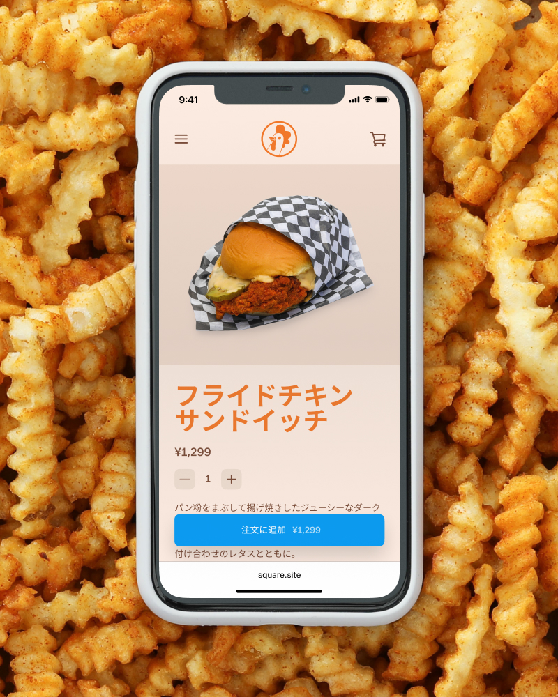 まず、Square アカウントを無料作成します。あなたのお店にぴったりのオンライン注文ページに仕上げるために、サイトビルダーでご希望のサイトデザインを選択します。引き続き作成したサイトに商品を登録します。お使いのSquare POSレジから自動同期するか、またはPDFや既存のメニューをインポートして登録できます。月額固定費や初期費用は必要ありません。かかる費用は、売上があった場合に発生する決済手数料のみです。