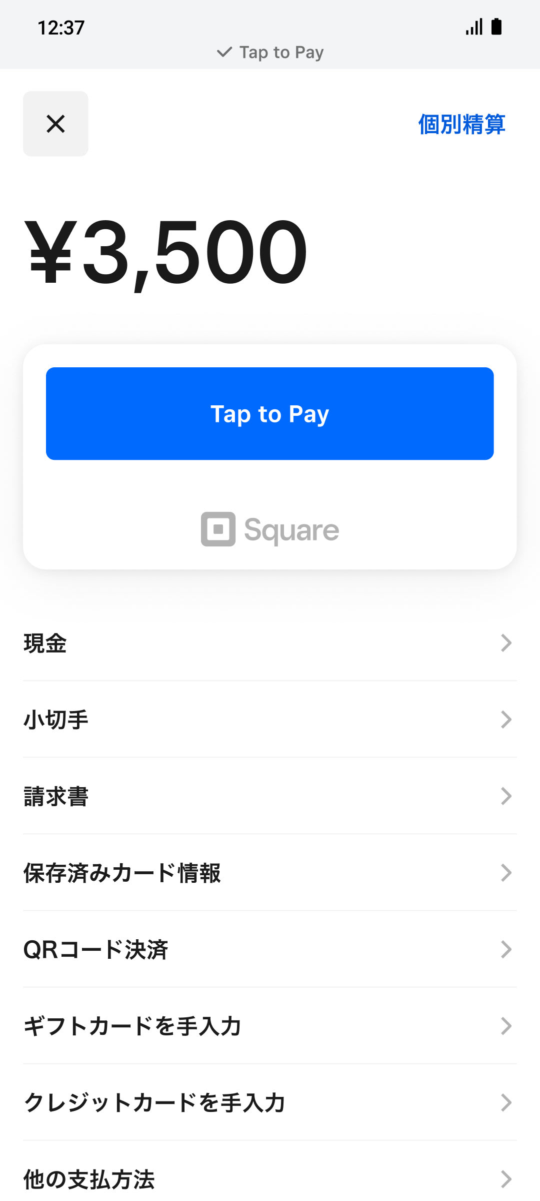 タッチ決済クレジットカード、Apple Pay、その他のスマートフォン決済をご利用になれます。タッチ決済が可能なカードかどうかは、タッチ決済対応マークの有無をご確認ください。お客さまがタッチ決済に対応したカードや端末をお持ちでない場合は、他の方法で支払いを受け付けてください。Square POSレジアプリを利用することで、クレジットカード情報の手入力による決済やPayPayのQRコード決済を受け付けることができます。*