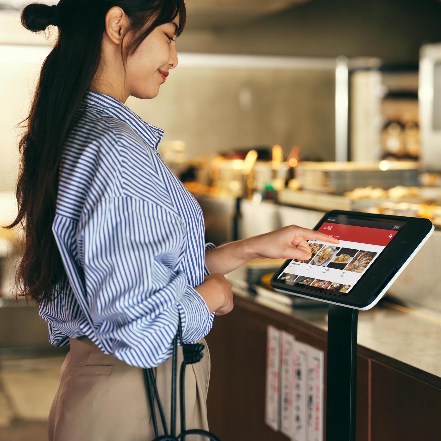 高感度のデュアルタッチスクリーンと内蔵POSアプリを搭載し、日々の業務で生じるさまざまな状況にも対応できる高い耐久性を備えています。