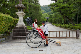「人力車って、なかなか乗ることがないじゃないですか。それで、たとえば着物を着て人力車に乗って、ちょっとタイムスリップしたような気分で京都を楽しんでいただく。 一番最後に、お金のやり取りって現実の世界に引き戻されちゃうじゃないですか。一瞬で」