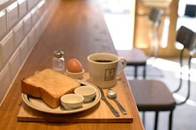 喫茶店文化へのオマージュとして、フード・オブ・オリジンになる個性を出すために、「パ―ラー江古田」にパンを焼いてもらうことにしました。以前より馴染みがあって気に入っている店で、頼んだのは人気のハードパンではなく、オリジナルの食パン。トースト用にとお願いしたらびっくりされていましたが、試作を繰り返して全粒粉の厚めのトーストが完成しました。安らぎと口の中でとろける食感を求めた一品です。