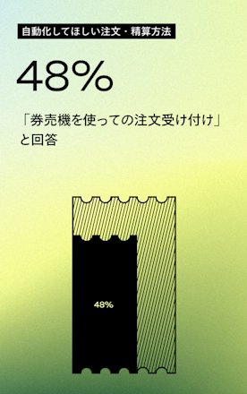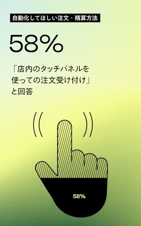 コロナ禍をきっかけに接触機会を減らすツールが活用されはじめるなか、飲食店では人を介さない注文方法や会計方法を好むお客様も増えているようです。なかでも自動化してほしい注文・精算方法として、「店内のタッチパネルを使っての注文受け付け」と答えた消費者は58%にもおよびました。
