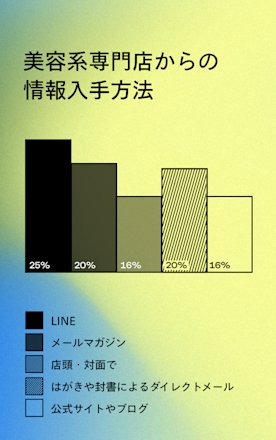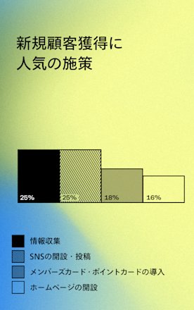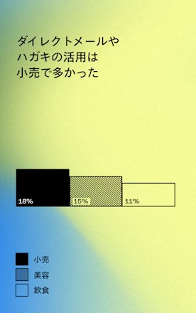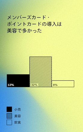 たとえば「SNSの開設・投稿」と「情報収集」は全業種が取り入れている施策ですが、異なる点として、美容では新規よりもリピーター獲得の施策として「メンバーズカード・ポイントカードの導入」を行っている割合が若干多く、小売だと「ダイレクトメールやハガキの案内」も比較的多くの回答が集まりました。