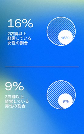Squareの事業主調査では、現在運営している店舗数についても聞きました。女性起業家の大半が1店舗のみと答えるなか、約6人に1人は2店舗以上経営しているという結果が明らかになりました。また、2店舗以上経営している女性の割合は、男性を上回りました。
