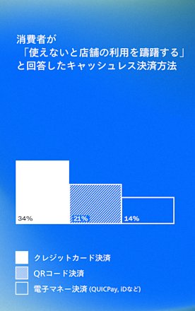 Squareの消費行動調査では、小売店で導入していてほしい決済方法として「クレジットカード決済」と答えた人は全体の65%にもおよびました。そのうち、クレジットカード決済が使えないと利用を躊躇してしまうと答えた人は34%と、全体の約3分の1にもおよんでいます。キャッシュレス決済非対応が機会損失を招いてしまうといえるかもしれません。