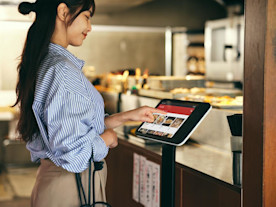 各テーブルに置いてあるタブレットで注文する方法は、ファミリーレストランや居酒屋などで見かけることが増えてきました。店舗入口に設置した大型タッチパネルで注文・決済を行う方法は、大手のファストフード店や牛丼チェーンが取り入れています。