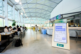 広々とした店内が特徴で、席数は54席と「ASAKARA GOOD STORE」の2倍ほどあり、テラス席でも食事を楽しめる。このテラス席こそが、モバイルオーダー導入のきっかけだ。