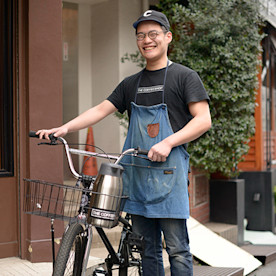 ミニマムは1リットル約5杯分から。デリバリーエリアは代官山店から半径500m以内が目安ですが、僕が淹れたコーヒーをBMXの籠に入れて直接お届けします。