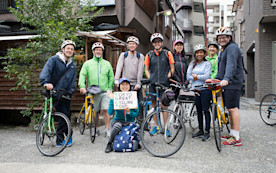 朝、スーツ姿の男女が行き交う中、カジュアルな格好をした外国人が次々とやってくる。手ぶらで来て、自転車をもらって、あとは皆の準備が整い、出発を待つばかりの手軽さだ。