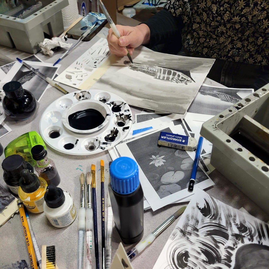 Saturday, November 15, 10:00 PM: Brush up and broaden your inking techniques at Inking: Brush, Washes, and White Space! Conquer your fear of committing to the permanancy of the page and learn to love it! 🪥