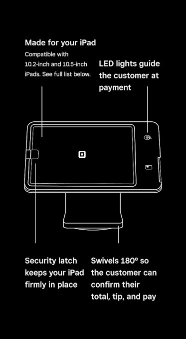Swivels 180º so the customer can confirm their total, tip, and pay