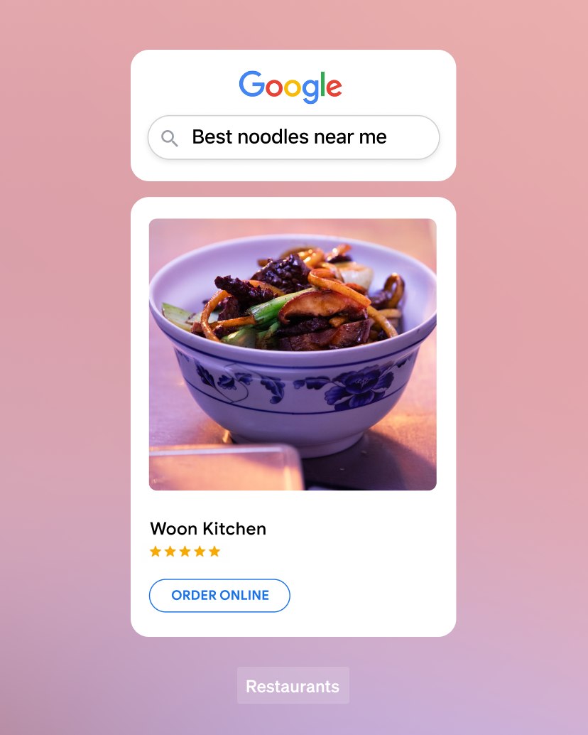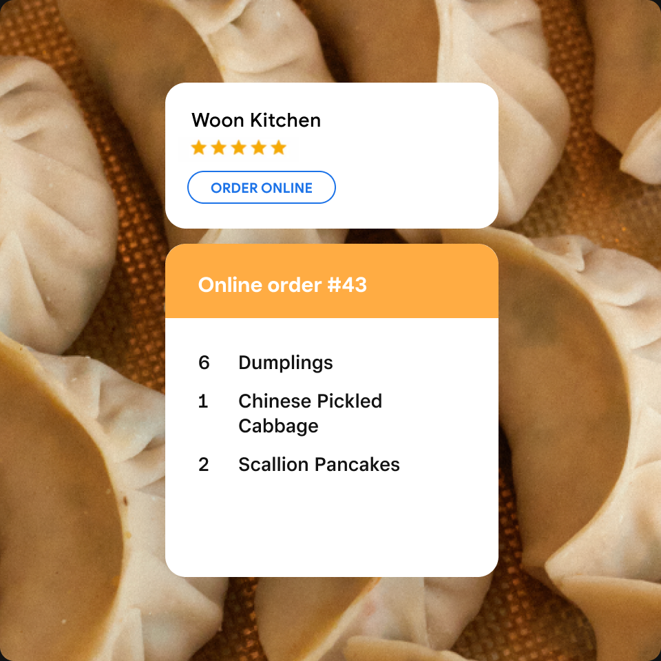 Accept orders directly from your site through Google Search and Google Maps discovery.