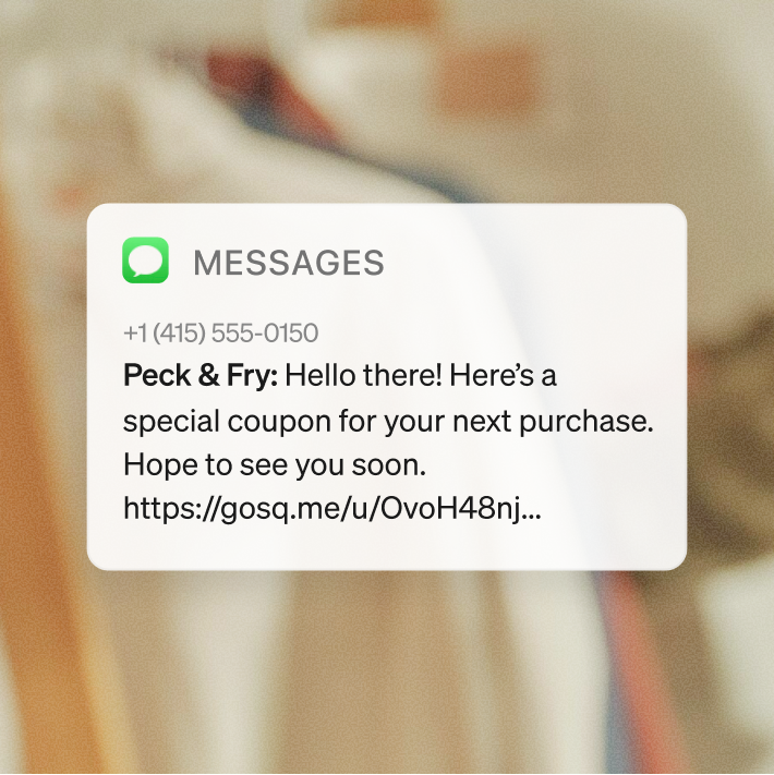 Customers receive texts automatically when they’ve earned a reward. It’s just as simple to redeem in person or online.