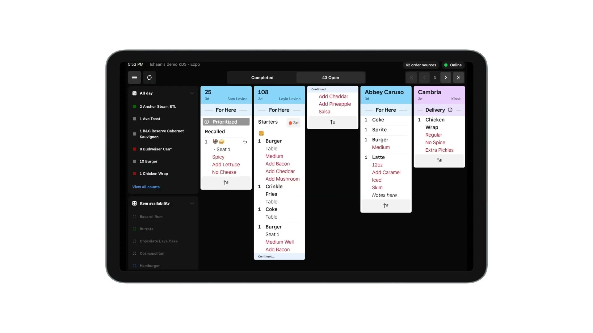 Demos for full-service, quick-service, and counter-style restaurant operations on Square.