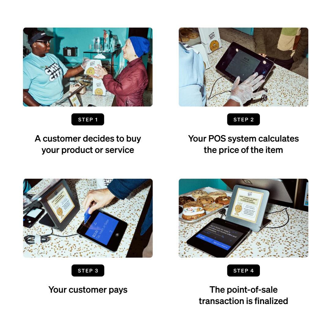 - Your customer pays. To finish their purchase, your customer will have to use their credit card, tap card, debit card, loyalty points, gift card, or cash to make the payment go through. Depending on the type of payment they choose, your customer’s bank then has to authorize the transaction.