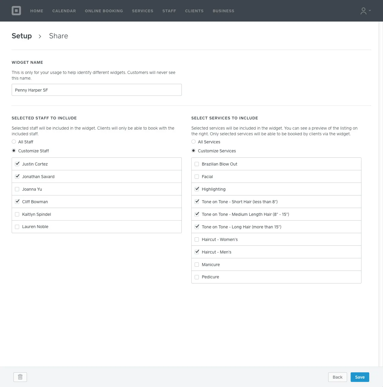 Do you have a page on your website for each individual stylist? Now you can have a booking widget on that page with just the services offered by that stylist. Here is how to set it up in Advanced Options: