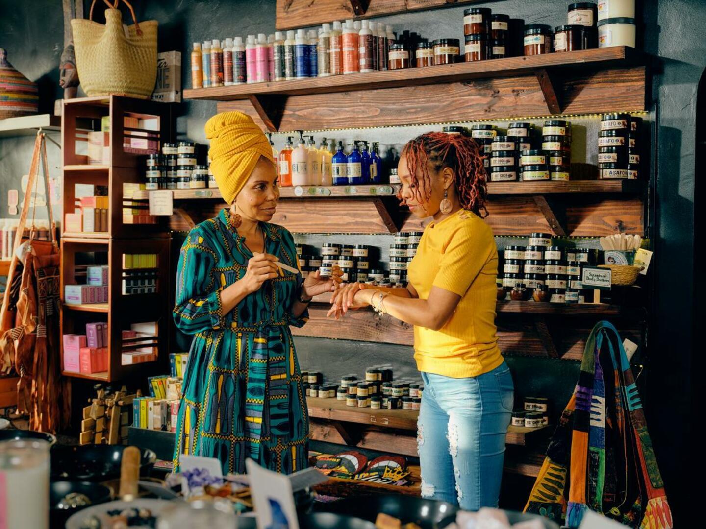 Sharon Williams Askia: Then I said then we were going to have to be that change we wanted to see in the community, and so that's what we did. Everything about Nappily Naturals and Naked is a holistic approach for the whole body. Everything we make and use is made with food plants and herbs. It's all organic and natural. On the naked side, it is our zero waste store. You can bring your own containers to refill your plant-based hand soaps and your face soaps. Leer Park is just this hub, this mecca of black creatives and artisans, people who are on the same path. I see how we have benefited the community, how the community has benefited us.