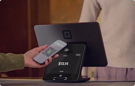 La pantalla para el cliente en Square Register invita a los clientes a pagar de manera intuitiva al solo acercar o insertar la tarjeta para que la fila de clientes avance rápidamente.