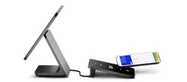 Protege tu hardware y permite a los clientes pagar más fácilmente con accesorios de terceros integrados, como soporte de mostrador Bosstab para la pantalla de Square Register orientada al cliente.