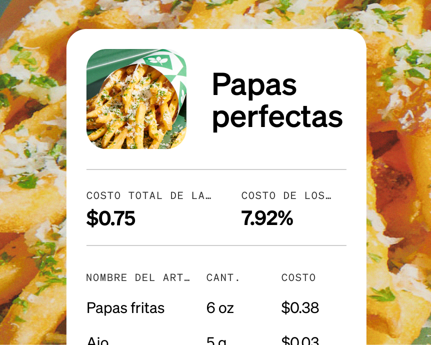 Realiza un seguimiento de recetas complejas y modificadores para entender el costo real de cada plato y su rentabilidad por ingrediente.