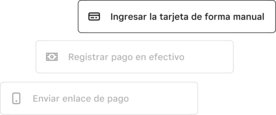 por transacción con tarjeta ingresada manualmente o guardada, o bien, con enlace de pago