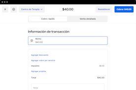 Un cobro rápido se produce solo si deseas ingresar manualmente el importe personalizado de una transacción. La venta detallada te permite agregar artículos de tu surtido de artículos. Esto es posible después de configurar un surtido de artículos para productos o servicios, lo que te da una mejor perspectiva de tus ventas y ofrece a tus clientes recibos más detallados.