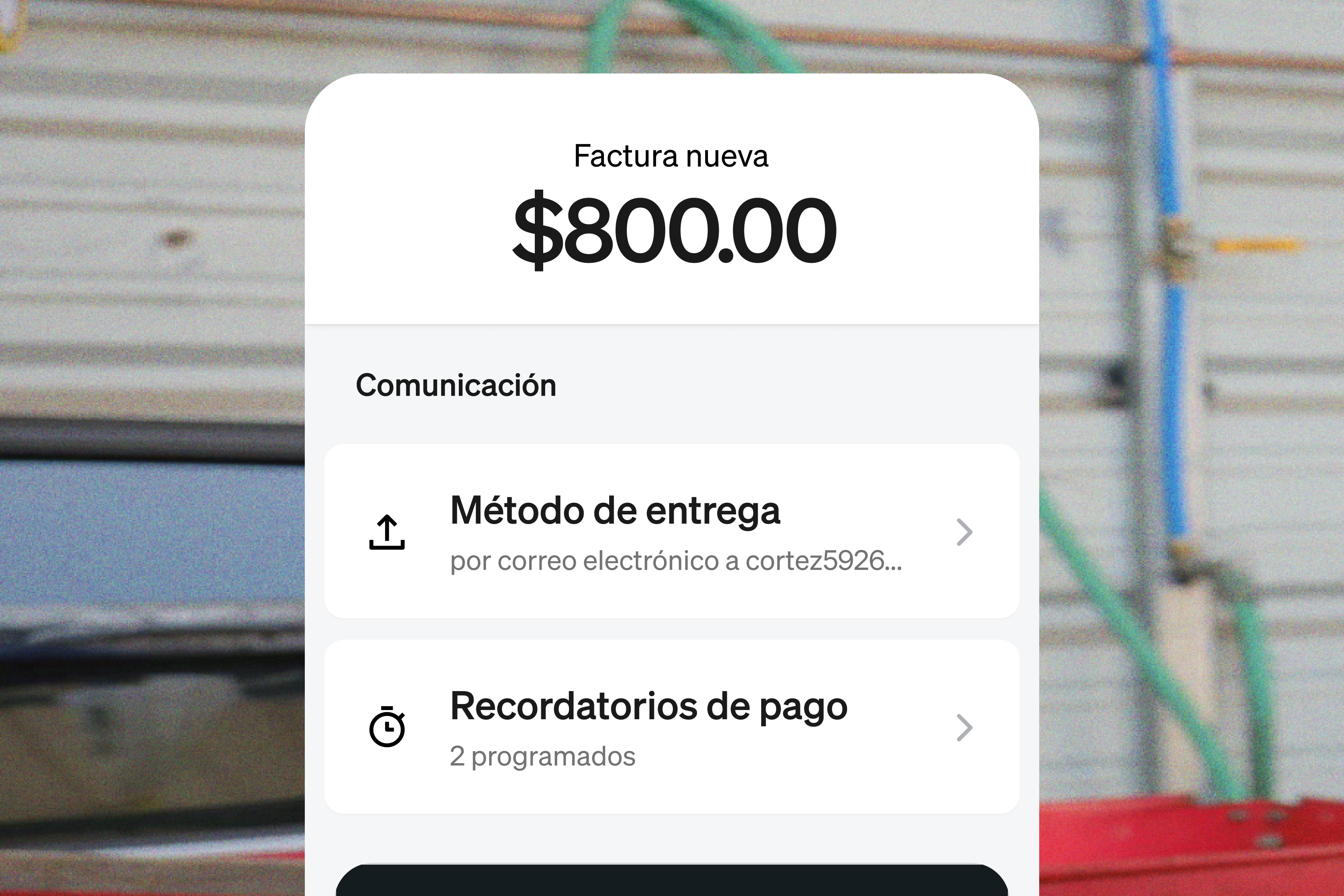 Envía facturas por productos o servicios para que tus clientes puedan pagar desde cualquier lugar.
