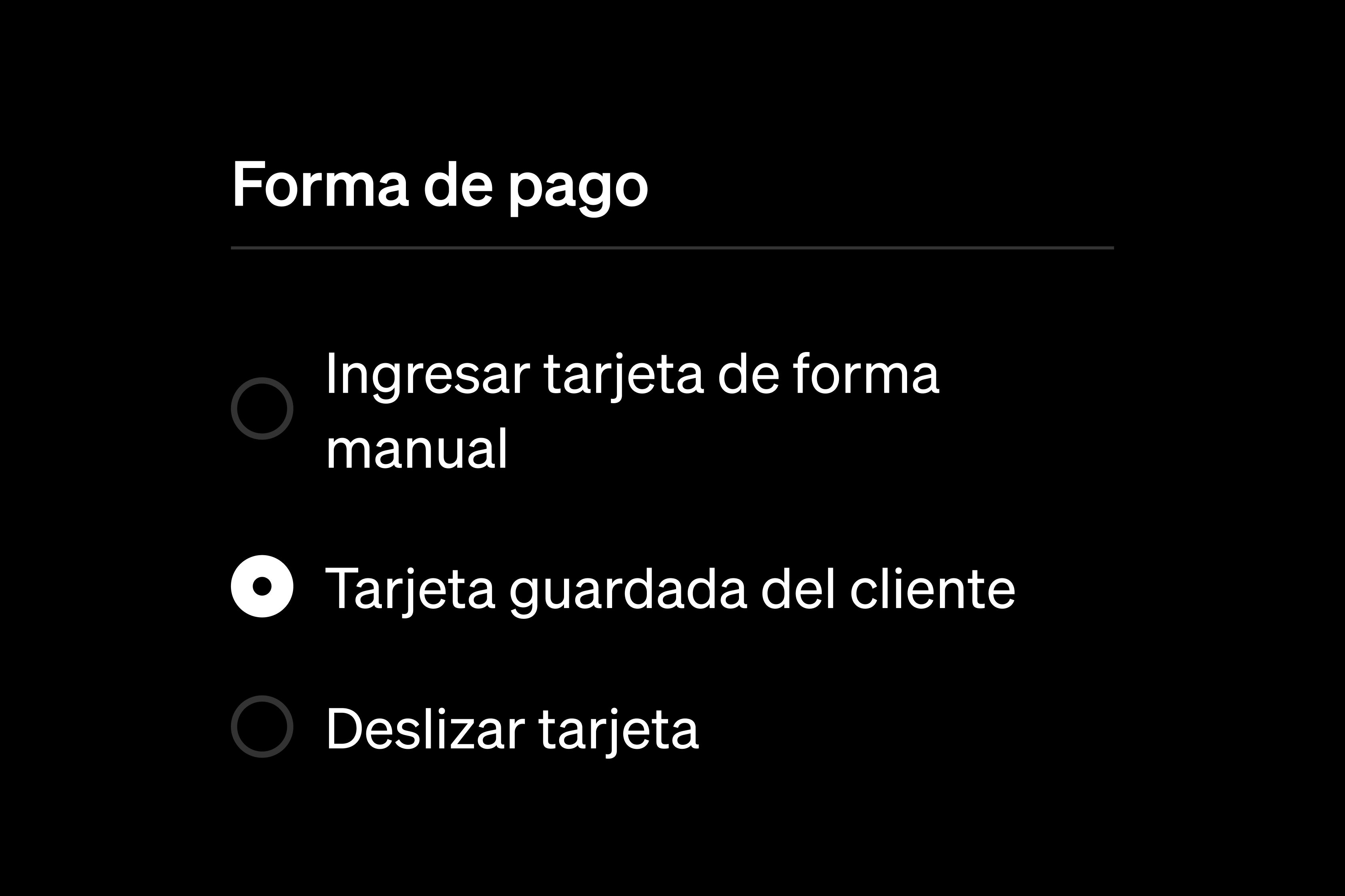 Mientras tu cliente te da los datos de su tarjeta por teléfono o de forma remota, puedes ingresarlos manualmente para procesar el pago.