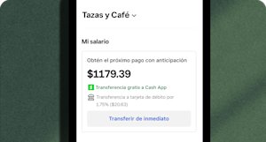 Los miembros del equipo elegibles que usen Cash App pueden usar la función Depósito instantáneo para acceder a su pago dos días calendario antes de la fecha de pago original. Disponible en los estados que cumplan con los requisitos.