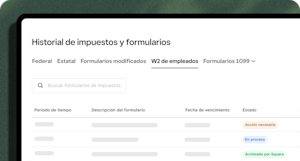 Sí. Los servicios de nómina en línea de Square se encargan de tus declaraciones y pagos de impuestos federales y estatales en tu nombre sin cargo adicional. Tanto los empleados con W-2 como los contratistas con 1099 que forman parte del equipo reciben copias digitales de sus formularios de impuestos.