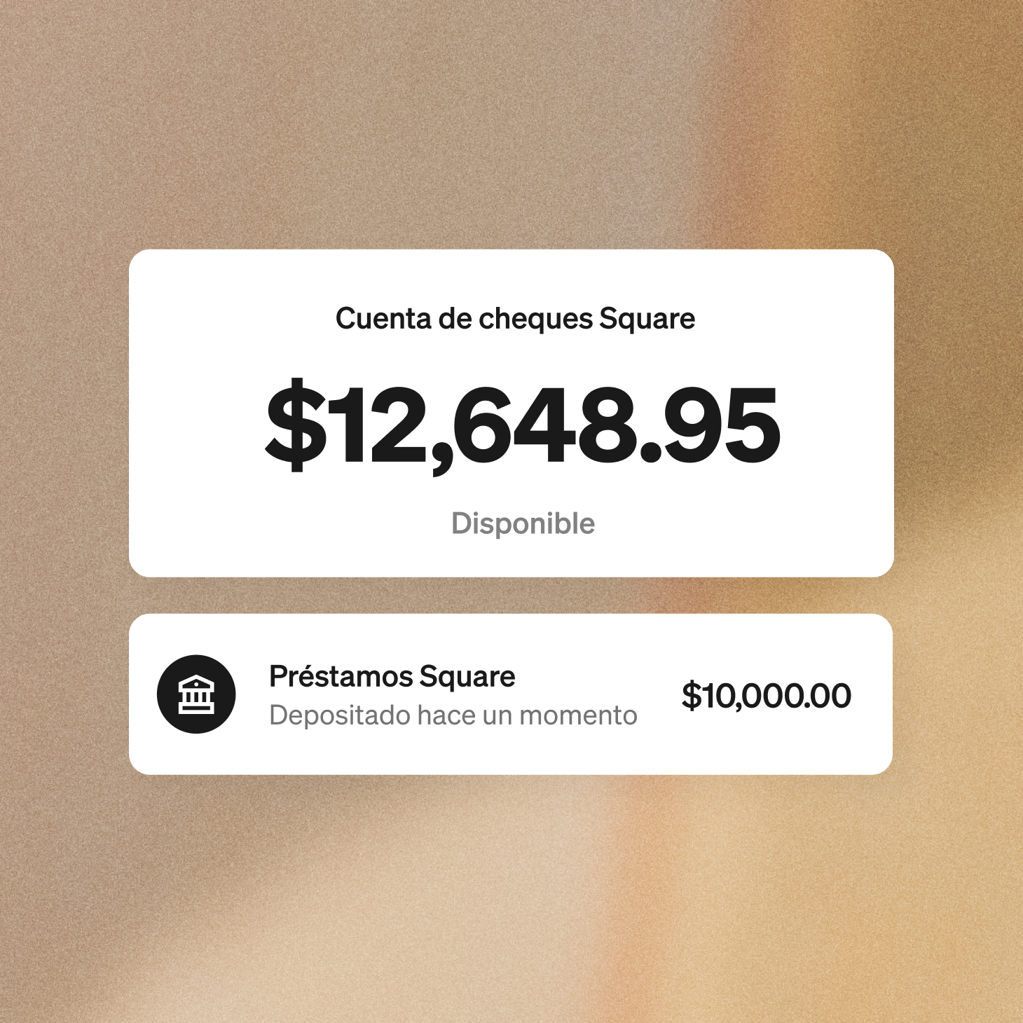 2 La Cuenta de cheques Square es proporcionada por Sutton Bank, Member FDIC. La Tarjeta de débito Square es emitida por Sutton Bank, Member FDIC, de conformidad con una licencia de Mastercard.