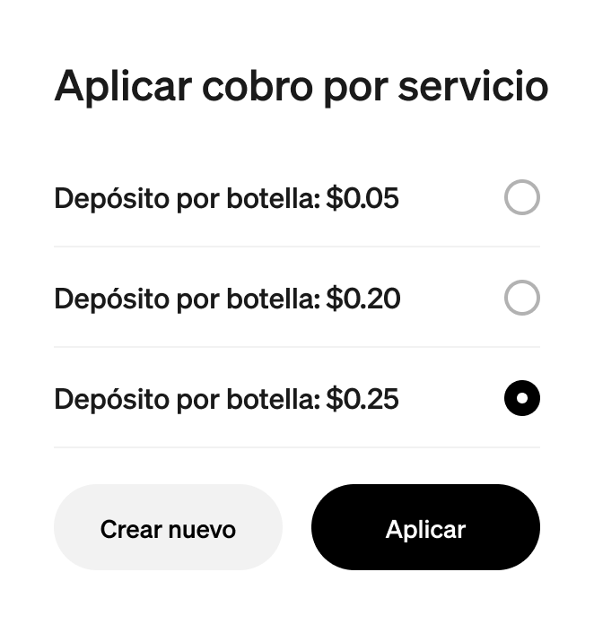 Agiliza el proceso de pago con cobros de depósito configurables. Configura un depósito por botella por artículo y se agregará automáticamente al pedido en el proceso de pago.
