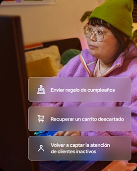 Comienza rápidamente con campañas prediseñadas para recibir clientes nuevos, compartir cupones de cumpleaños, hacer que los clientes inactivos regresen, enviar recordatorios de carritos descartados y más.