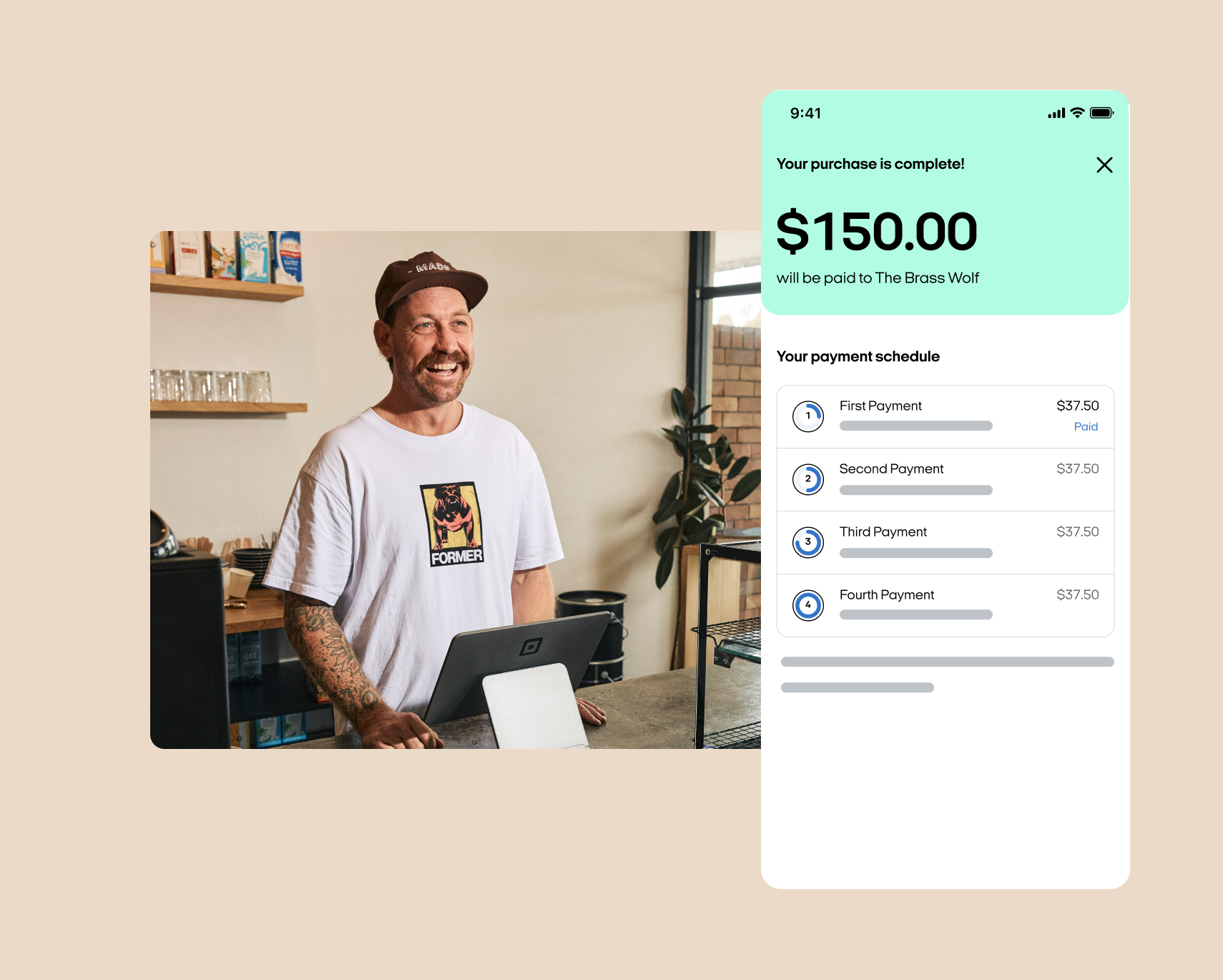Let your customers pay in four interest-free instalments, while you get paid in full straight away.