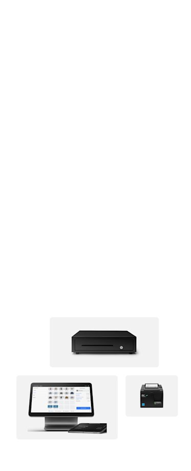 L’equip de l’Square Register inclou l’Square Register, una caixa d’efectiu, una impressora de rebuts i paper.